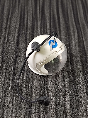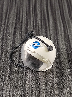 Helm mit Atemschlauch, Visier und aufgedrucktem Space-Logo