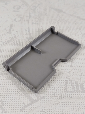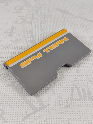 graue Abdeckklappe für das Seitenfach des Spionagefahrzeugs, oranger Aufdruck "Spy Team"