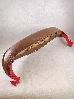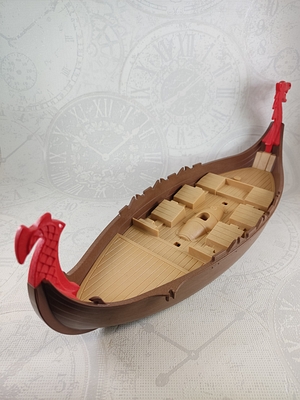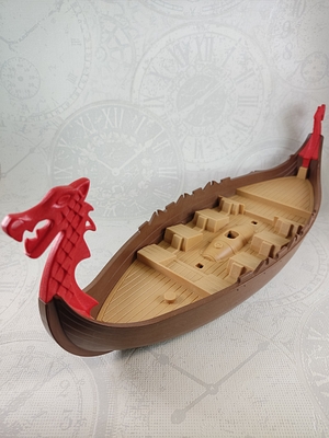 brauner Rumpf mit beigem Deck-Einsatz und roten Drachen Galionsfiguren für Bug und Heck