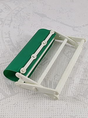 Feldbett, Campingliege 4-teilig, Gestell weiß mit grüner Auflage und Auflagenhalter