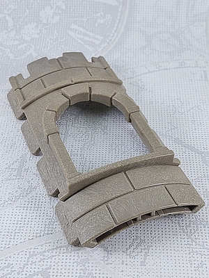 Steinmauer, gebogene Wand mit Bogenfenster und Steinmuster, ca. 7,5 cm x 14 cm, Burg, Turm, Mittelalter