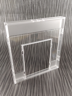 transparente Fensterwand, Glaswand mit Türöffnung, 15 cm x 16,5 cm, oben und unten milchiger Streifen