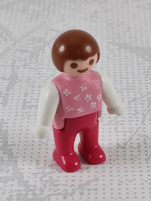 Säugling, Neugeborenes, Kleinkind mit weißen Blümchen auf dem rosa Oberteil