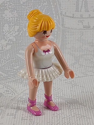 Frau, Tänzerin mit weißem Rock und rosa Tanzschuhen