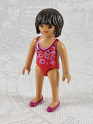 Frau in Badeanzug oder Unterwäsche magenta, dunkelpinke Schuhe