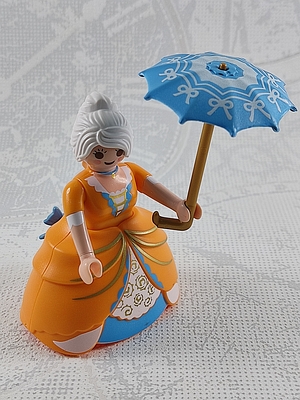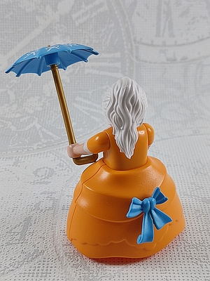 Dame weiße Haare, Kleid und 2-teiliger Reifrock orange, Rockschleife, Sonnenschirm