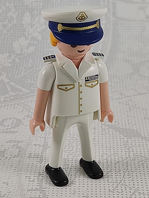 Kapitän in weißer Uniform, d.blau/gold abgesetzt, mit Kapitänsmütze, Schirmmütze