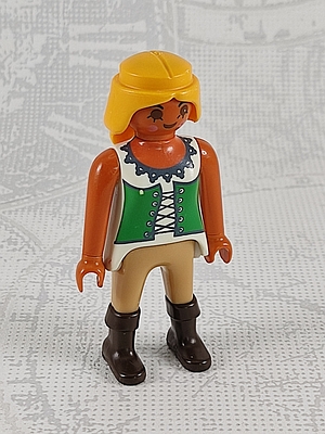 Piratenfrau, dunkle Hautfarbe, lange, blonde Haare zum Zopf geflochten