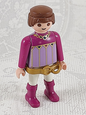 Prinz in magenta/lila Pulli, weiße Hose, goldener Gürtel