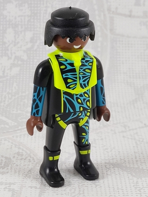 Taucher, Taucheranzug schwarz/neongelb, dunkle Haut - mit Brustschutz