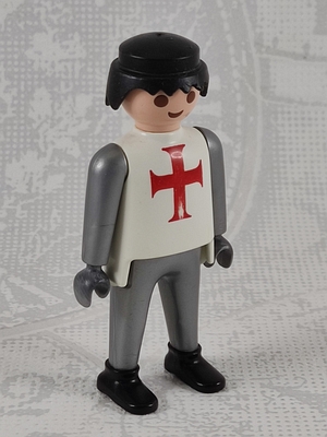 Ritter mit rotem Kreuz auf dem weißem Oberteil, silberne Ärmel, graue Hände