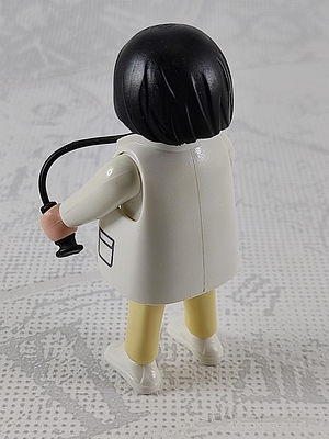 Frau, weiße Jacke, karierter Pulli, hellgelbe Hose, weiße Schuhe - komplett mit Stethoskop