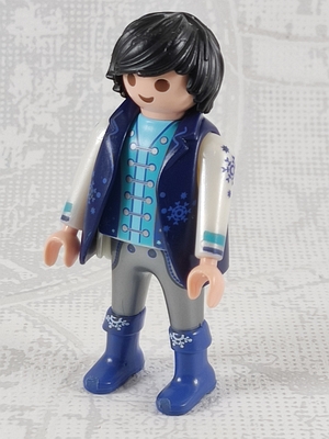Mann in d.blauer Weste, Arme und Stiefeln mit Schneeflocken-Verzierung