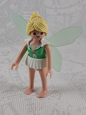 Zahnfee, aufgedruckte Halskette, mit Haarteil für Hochsteckfrisur und grünen Flügeln