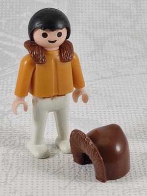 Eskimo Kind mit dunkelbrauner Fellmütze und Fellkragen