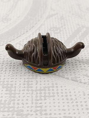Indianer, Medizinmann, Pelzmütze, Fellmütze dunkelbraun mit buntem Aufdruck, Hörner