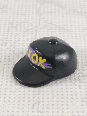 Cappy, Schirmmütze, Kappe mit Aufdruck: "XOX" in gelb, lila Pinselstriche als Hintergrund