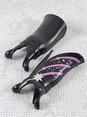 2-teiliges schmales langes Kleid, schwarz mit pinken Streifen und silbernen Stern