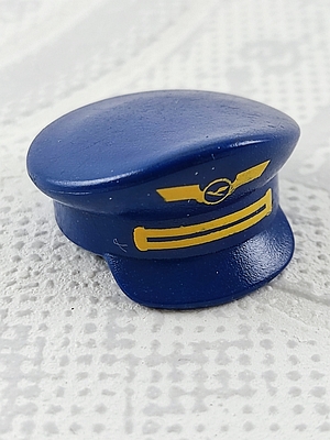 Pilotenmütze dunkelblau mit Aufdruck:Flügel und Streifen gelb