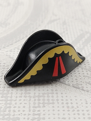 Hut, Piratenhut mit Federloch, Aufdruck: goldene Wellenlinie und zwei rote Streifen