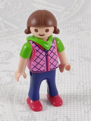 Mädchen, rosa Weste, grünes T-Shirt mit Kaputze, d.blaue Hose