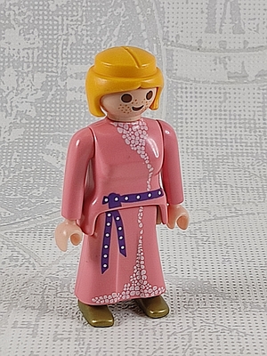 Märchenfee, Frau in rosa Kleid mit aufgedrucktem, lila Gürtel