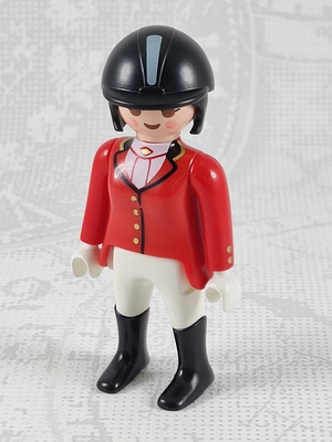 Reiterin, rote Jacke, schwarzer Helm mit weißem Streifen (30634293)