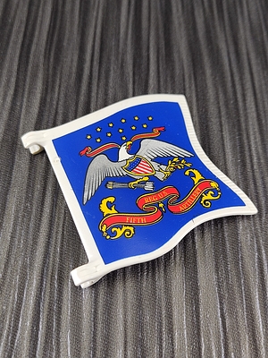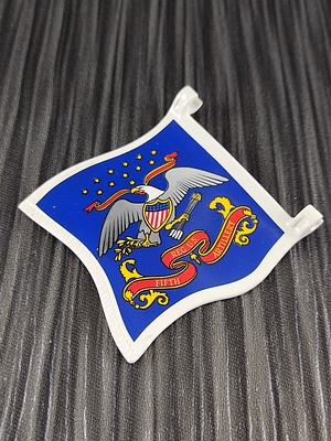 große viereckige, weiß / blaue Südstaaten Fahne mit Aufdruck auf beiden Seiten: Adler, Sterne, Spruchband