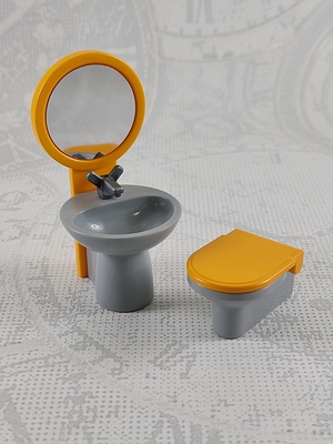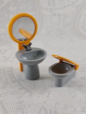 5-teilige Badausstattung: Waschbecken, Wasserhahn, Spiegel, Toilette und Toilettendeckel