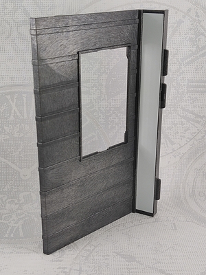 Dachelement, ca 20 cm x 12,7 cm, mit rechteckigem Fenster, ein abgewinkelte Längsseite mit weißem Aufkleber