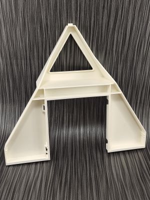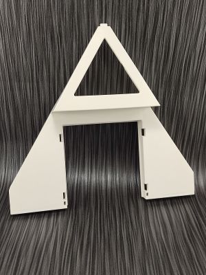 weiße Giebelwand mit Dreiecksfenster und großer Türöffnung