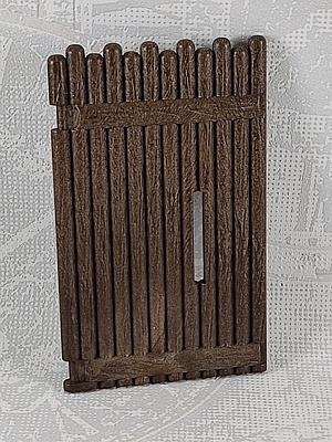 d.braunes Holztor aus Baumstämmen für Fort "Union" mit schmaler, rechteckiger Öffnung