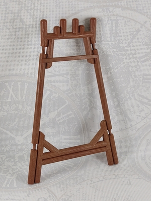 braunes Holzgestell, Holzrahmen aus Baumstämmen für Turm, ab oberer Strebe leichte Neigung nach innen