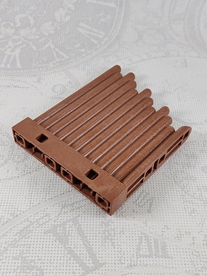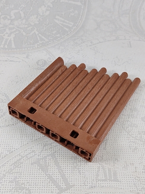 kleine braune Holzwand aus Baumstämmen, Abschlusselement, Wikinger, obere Kante schräg laufend