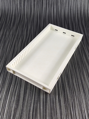 weißes Wandelement mit Rillen für Regalbretter, Polizeigebäude, 9 cm x 16,5 cm