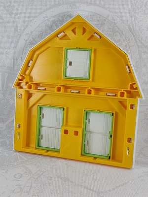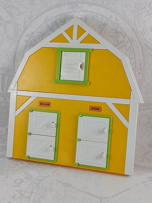 vordere Stallwand mit zwei Türrahmen, einem Fensterrahmen, einem Fensterverschlag und fünf Stalltüren / Stalltoren