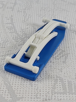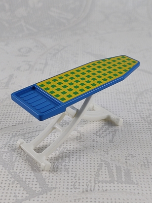 3-teiliges Bügelbrett, blaue, gelb-grün-karierte Bügelfläche, weißes Gestell (2-teilig), zusammen klappbar
