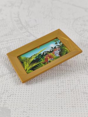 rechteckiger, goldener Bilderrahmen mit Aufkleber: Tiger im Dschungel
