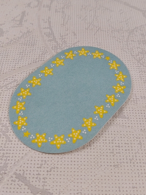 ovaler Badezimmerteppich aus Pappe, hellblau mit gelben Sternen, 9 cm x 6 cm