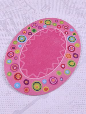 ovaler Teppich aus Pappe, pink mit bunten Kreisen, ca. 10 cm x 7,5 cm