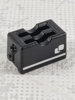 schwarzer Toaster mit einer silbernen Linie und zwei Quadraten (Toastscheiben)