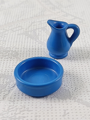 Schüssel und Wasserkanne zum Waschen im Schlafzimmer