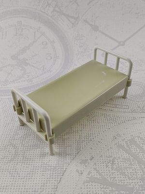 hellgraue Matratze (vergilbt) mit weißem Kopf-und Fußteil