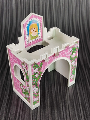 an der Vorderseite müsste der Aufkleber in den Burgzinnen wieder angeklebt werden (siehe Foto)