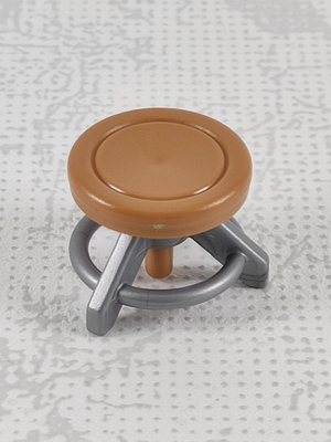 kleiner runder Hocker, drehbar, graues Gestell und braune Sitzfläche