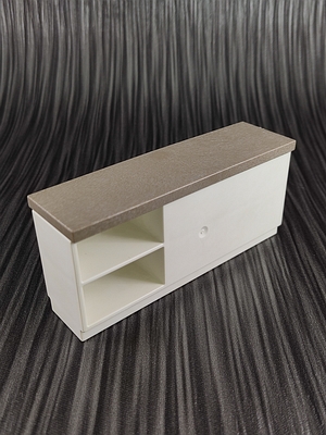 langer Küchenschrank, Sideboard, Raumteiler, weißer Korpus und graue Arbeitsplatte, ca. 10,5 cm lang, 3 cm tief und 4,7 cm hoch