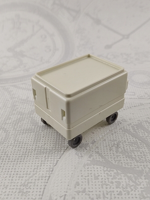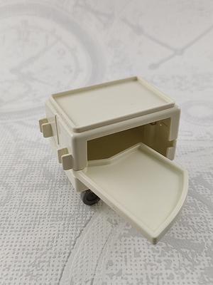 Schrank weiß mit einem ausklappbaren Brett und grauen Rädern, Werkzeug- / Essen-Wagen