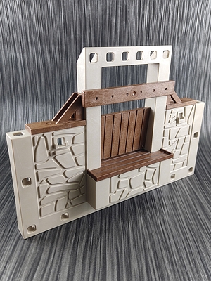Steinwand 21 cm x 15 cm mit Sitzbank und vier Holzelemente
