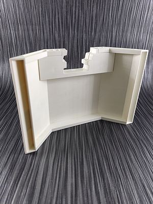 abgewinkelte Wand mit kleinem Durchbruch, 18 cm breit und 12 cm hoch mit Polizei-Aufkleber