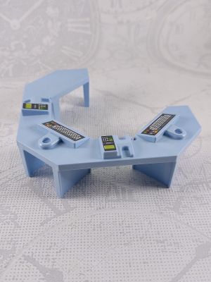 eckiges Pult, Schreibtisch für Küstenwache oder Polizei mit Aufklebern